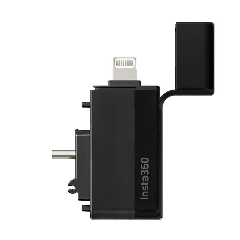 Rychlá čtečka karet pro kameru Insta360 X3. Čtečka slouží k rychlému stažení souborů z karty v kameře Insta360 X3 a následnému nahrání souborů do telefonu. Konektor Lightning.