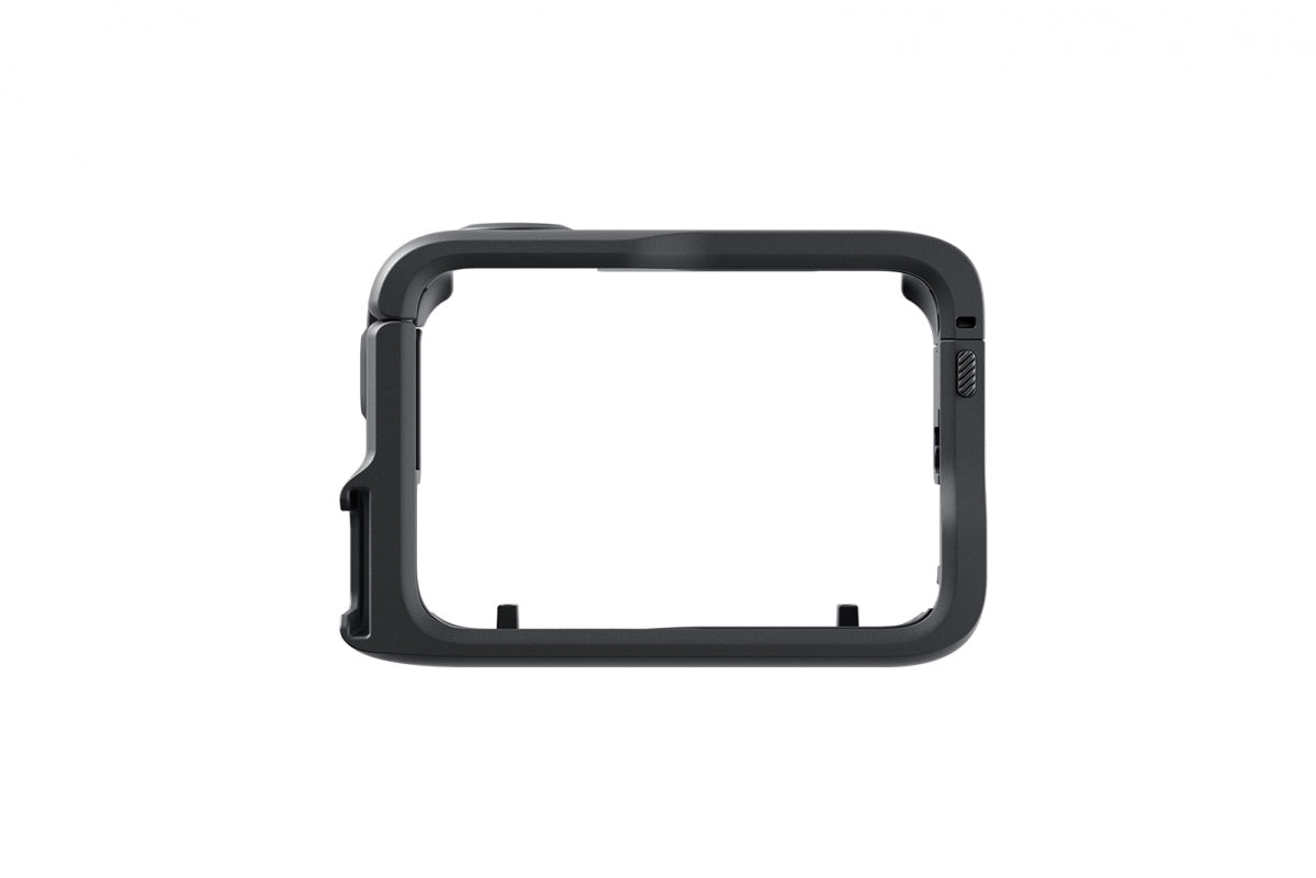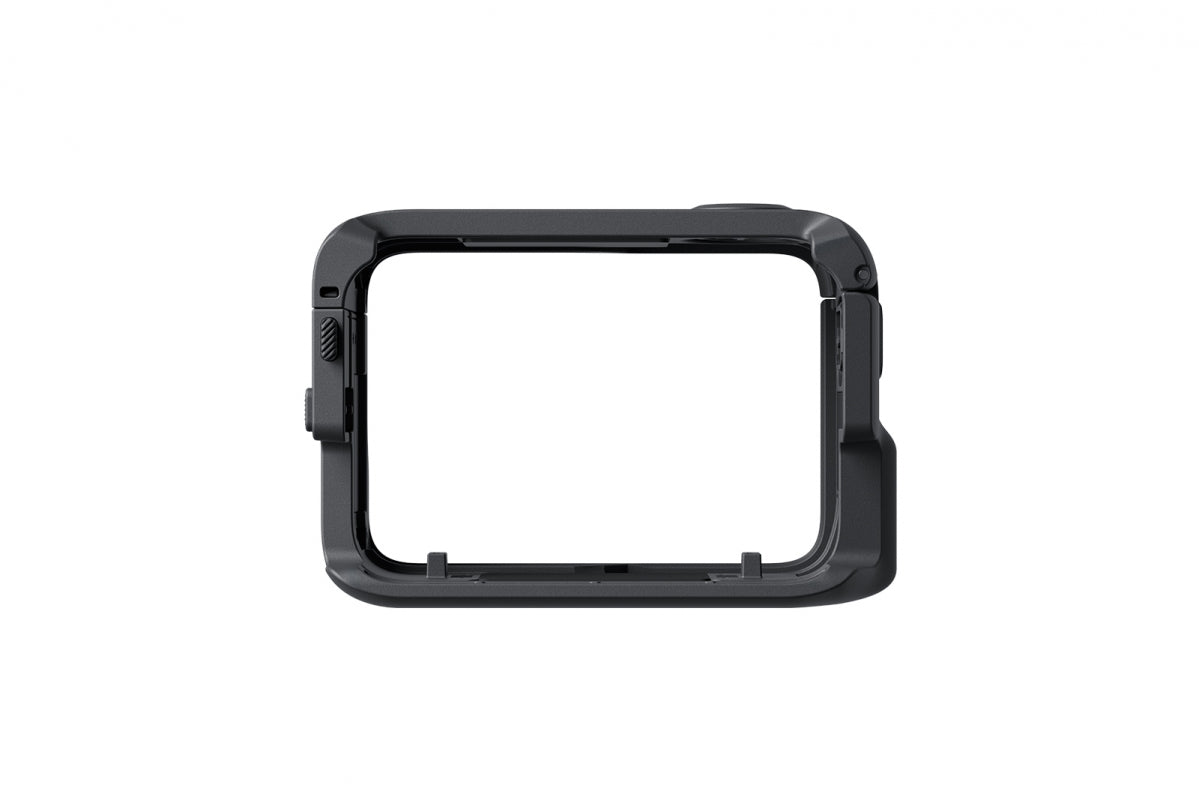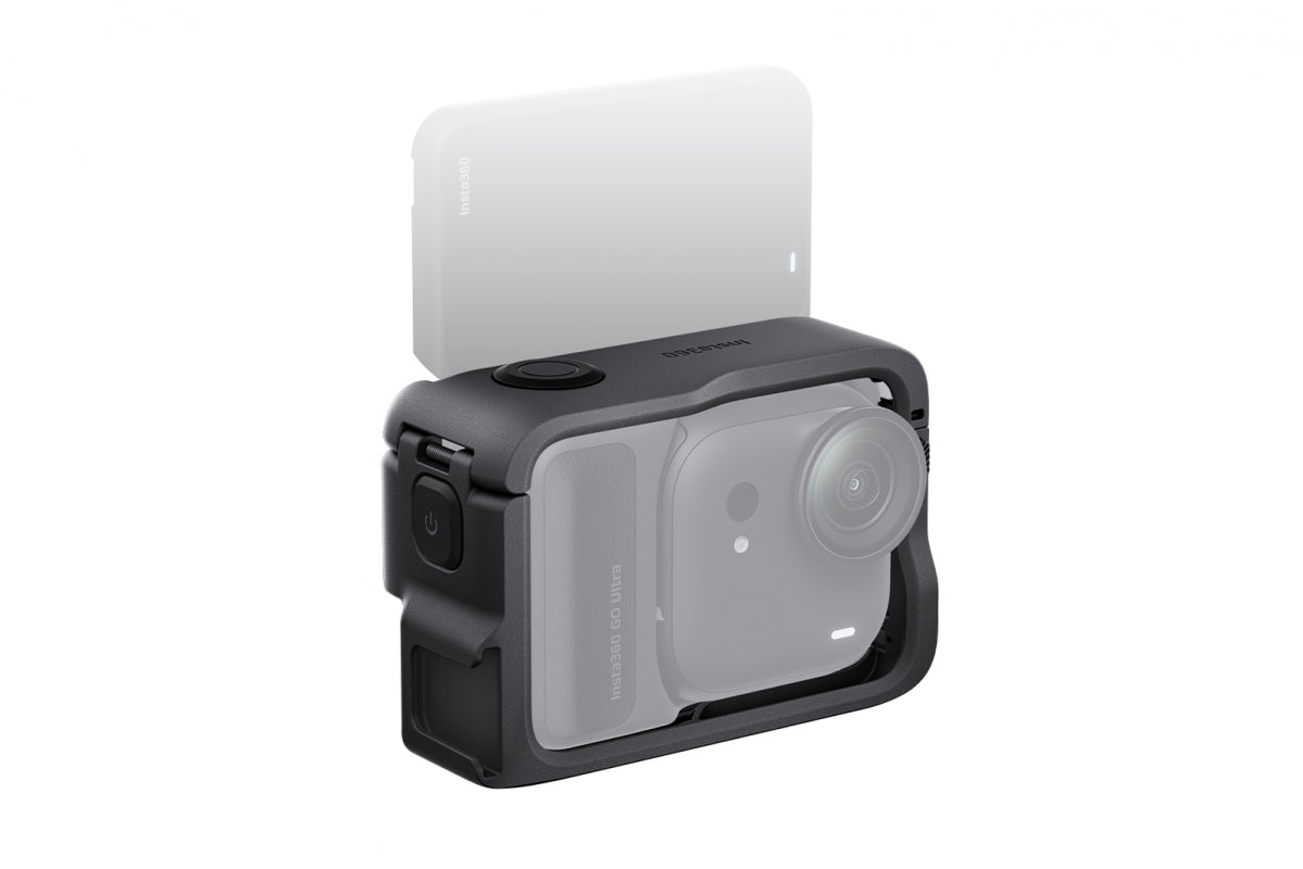 Ochranný rám, který kameru GO Ultra chrání proti nárazům a poškrábání. Díky rychloupínacím držákům snadno přepnete orientaci z na výšku na šířku a na závěr přidán univerzální cold‑shoe adaptér pro externí doplňky jako mikrofon či světlo. Umožňuje rychlé vyjmutí kamery bez sundání rámu — ideální pro natáčení s extra výbavou.