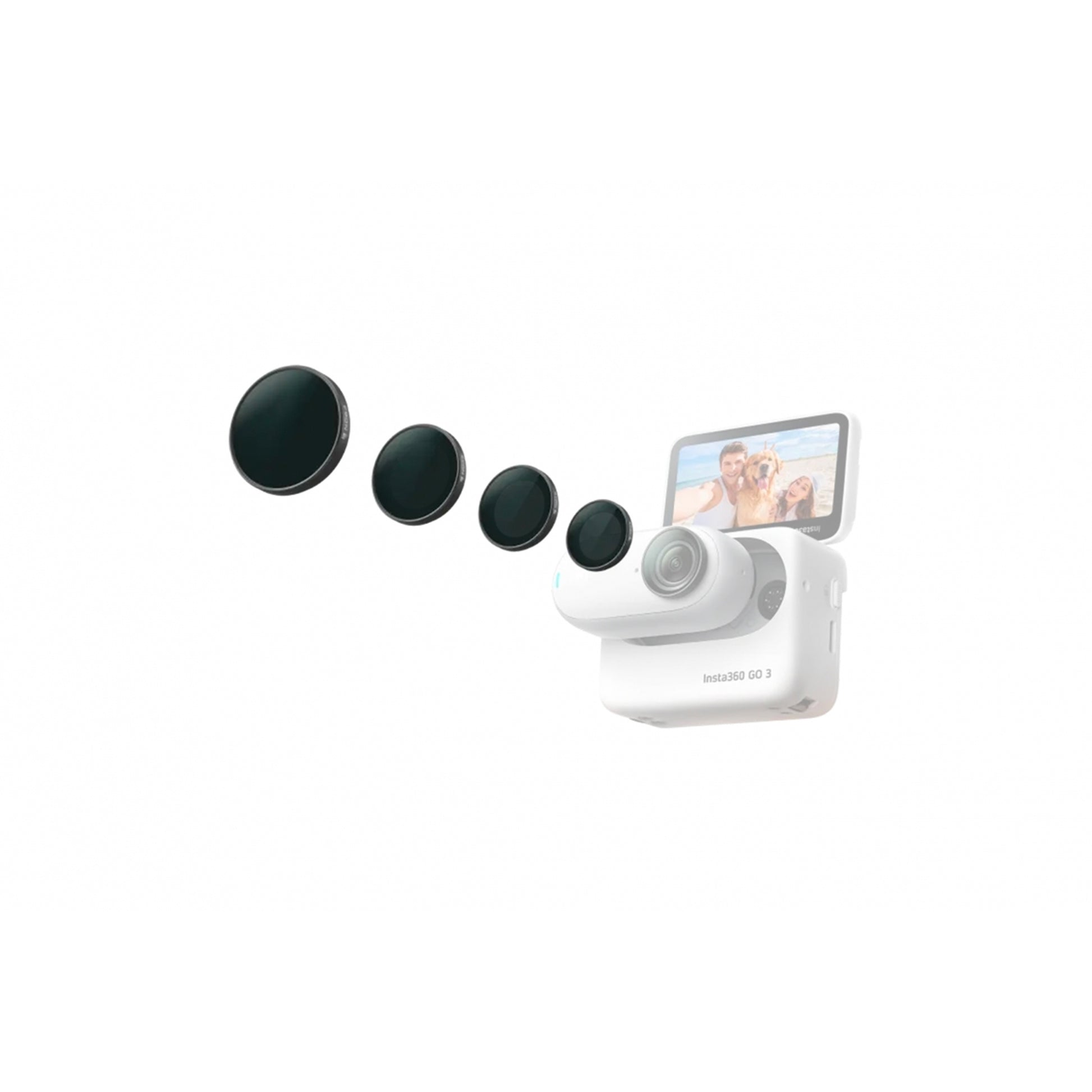 Sada šedých neutrálních filtrů pro kameru GO 3. Obsahuje filtry ND8, ND16, ND32 a ND64 pro čtyři úrovně redukce světla. Filtry jsou určené pro kvalitnější barevný záznam vysoce světelných scén. Dosáhněte snímků s dlouhou expozicí nebo jiných kreativních efektů. Filtry navíc chrání objektiv před poškozením.