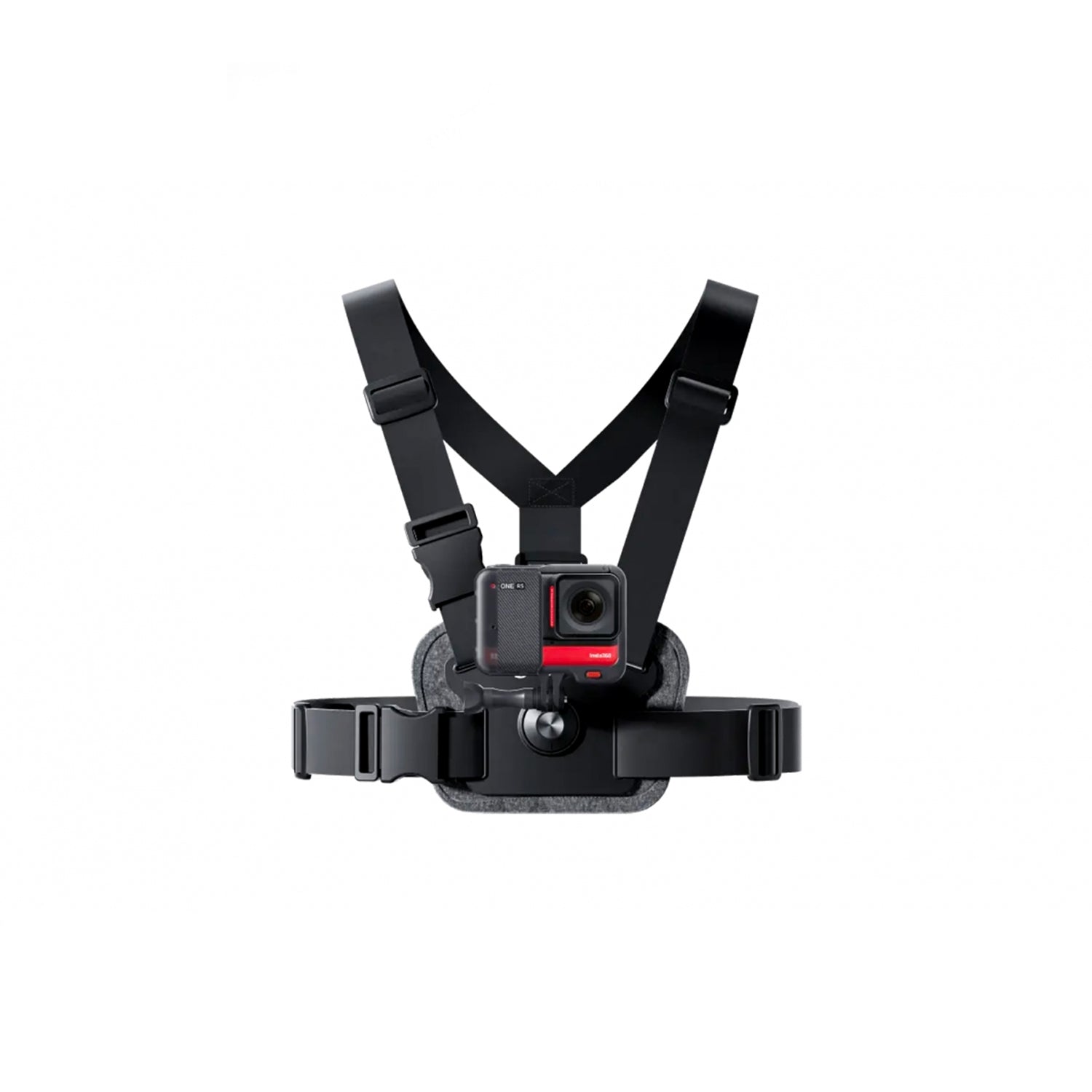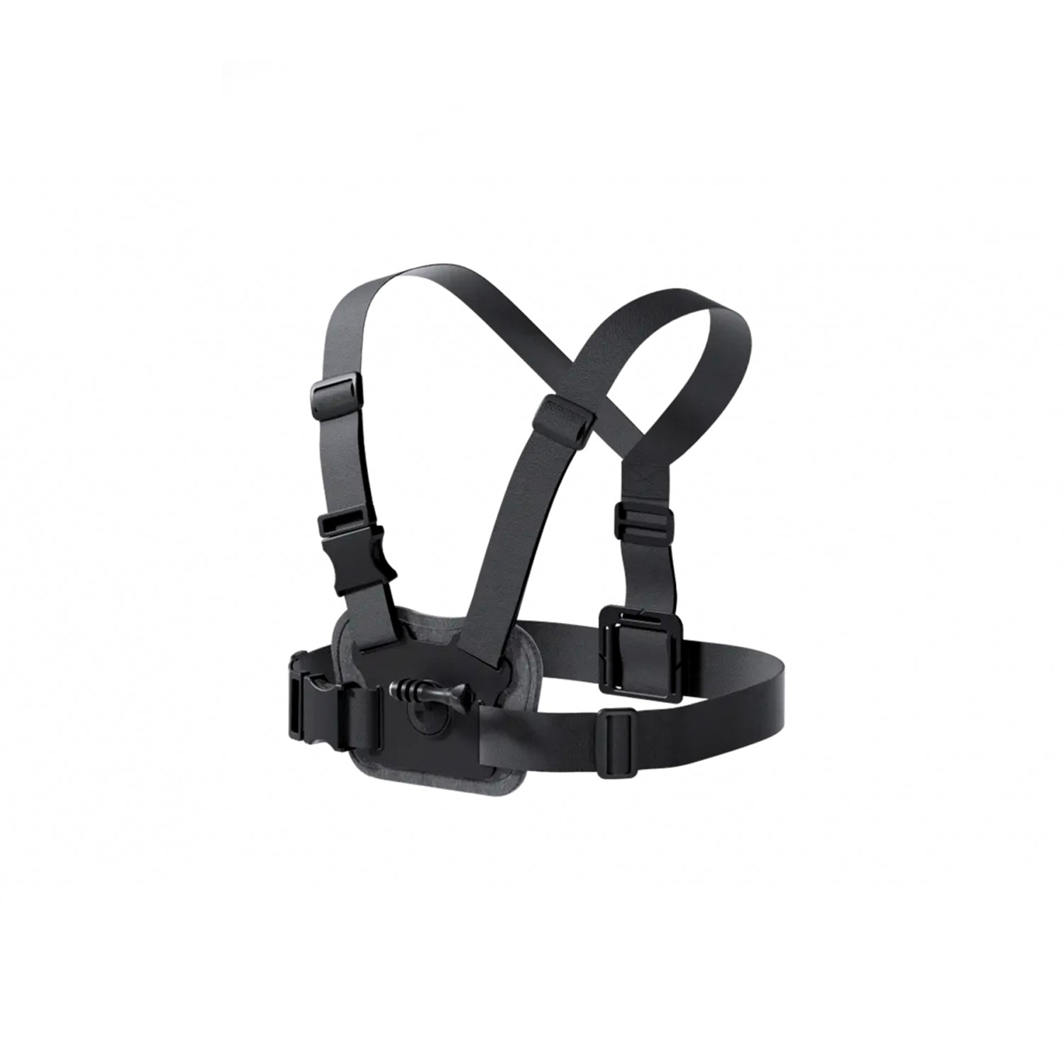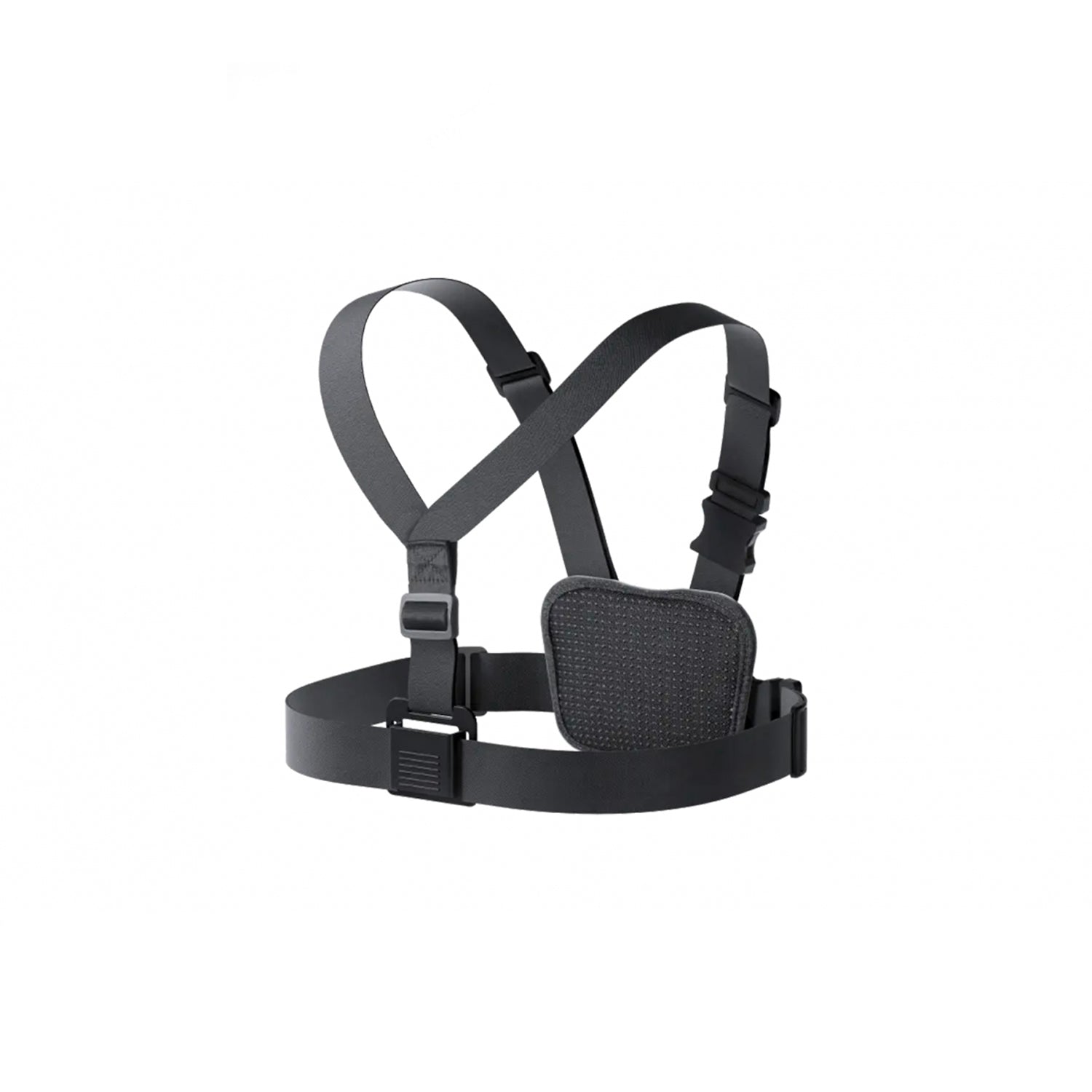 Popruh na hrudník pro uchycení akční kamery. Akční kameru lze polohovat horizontálně nebo vertikálně. Vyrobeno z polykarbonátu a jiných plastů.