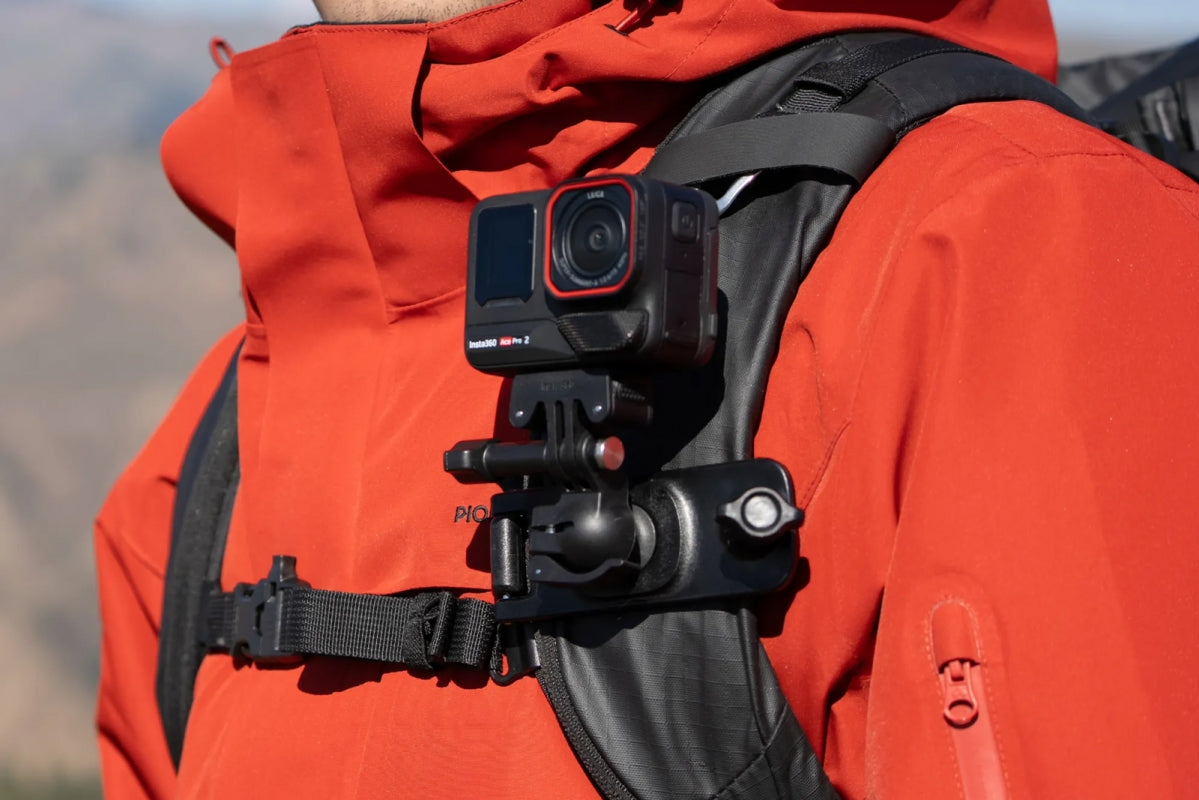 Připevněte kameru na popruh batohu pro hands-free záběry z pohledu první osoby. Ideální pro turistiku a outdoorové aktivity. Pevné uchycení bez prokluzu, odnímatelná kulová hlava s 360° rotací pro snadné přepínání orientace. Zaoblené hrany pro pohodlí. Kompatibilní s popruhy do šířky 7 cm. Kompatibilní s Insta360 Ace Pro 2, GO 3S/ GO Ultra, X4, Insta360 Ace Pro, Insta360 Ace, GO 3, X3, ONE X2.