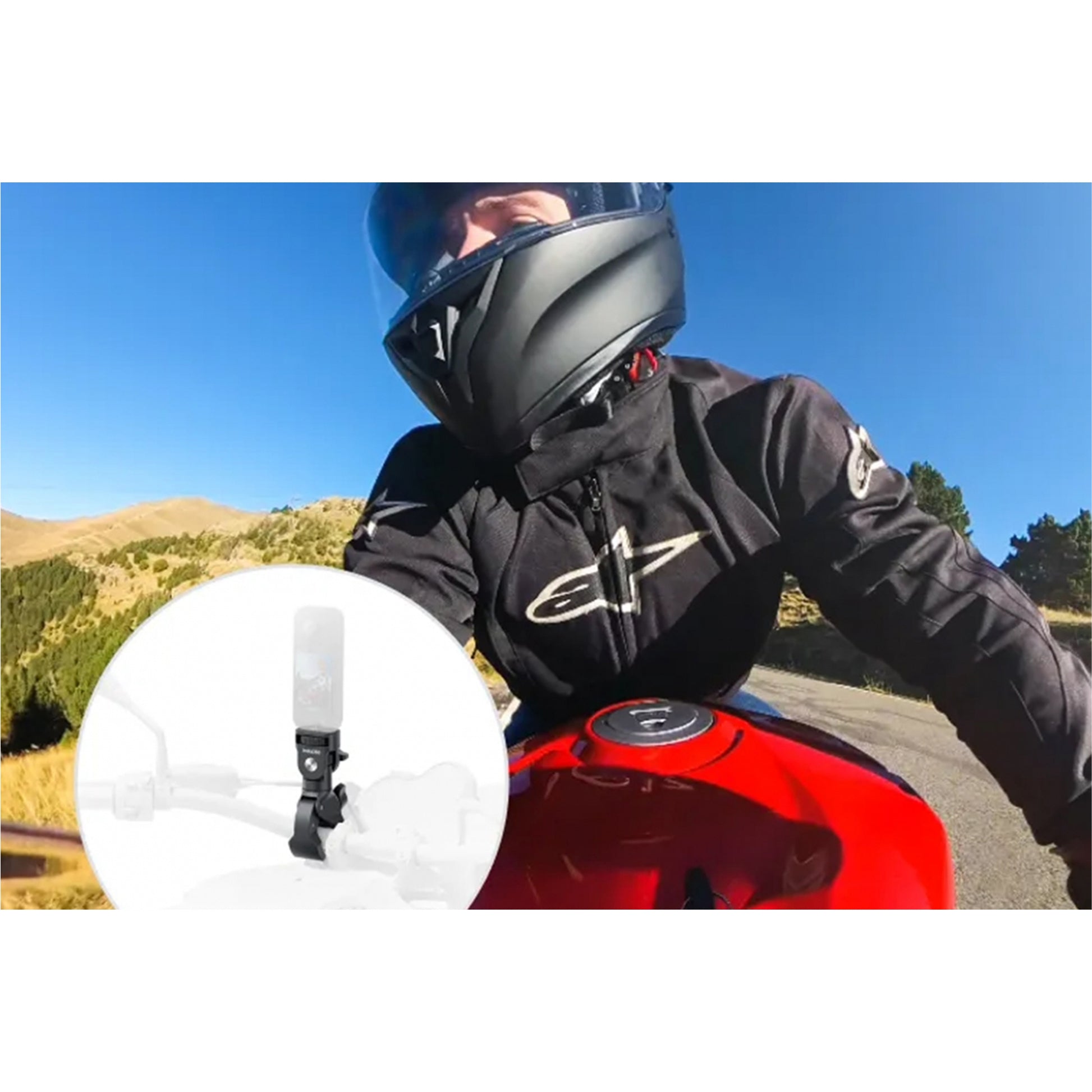 Univerzální a robustní svorka pro bezpečné upevnění kamery na řídítka a další povrchy. Nový design bez kulového kloubu zajišťuje stabilnější záběry. Pro použití s Insta360 GO 3S/3 je nutný Quick Release Mount. Lze použít i se selfie tyčí. Dodržujte místní zákony a předpisy při používání. Kompatibilní s Insta360 Ace Pro 2, X4, GO 3S, Insta360 Ace Pro, Insta360 Ace, GO 3, X3, ONE RS (Twin/4K), GO 2, ONE X2, ONE R, ONE X, ONE.